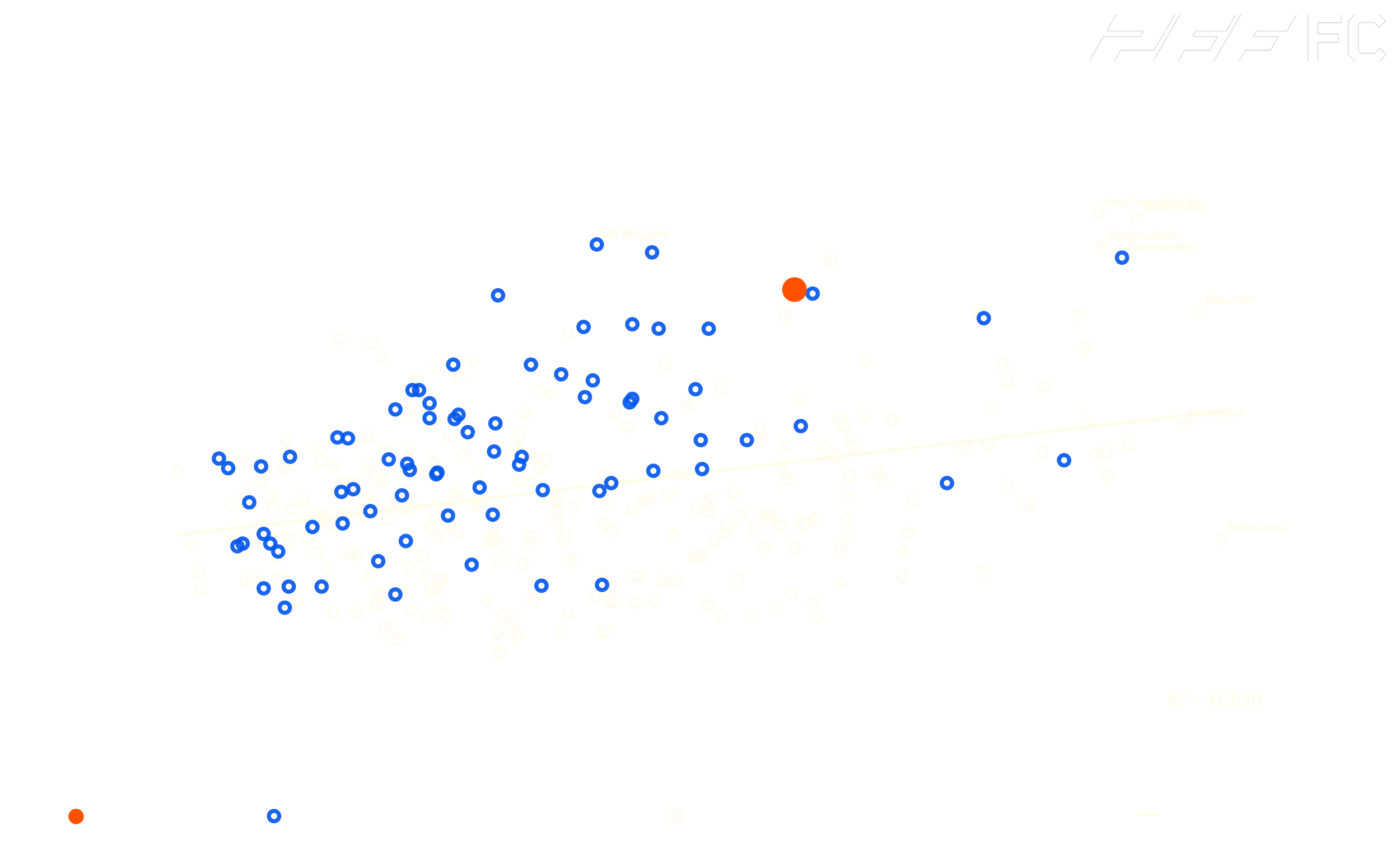 West Ham’s tumultuous start to the campaign might get worse after losing their best attacking threat and the 10th best passer in the league this season to a fractured foot. Bowen has created 42 chances this season, good for 6th most among all players. He has only completed 312 passes (the lower volume is expected as a forward) but has completed 25 through balls (14th among all Wingers/Attacking-mids). Bowen has excelled at passing under pressure and has shown the ability to use both feet which is important when playing all 4 positions across the front line.