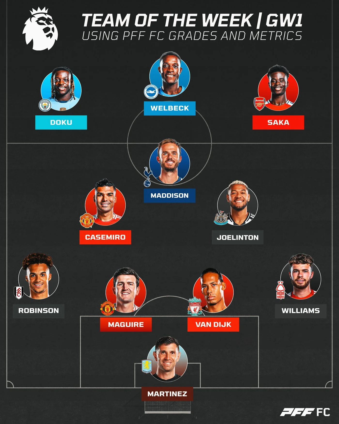 Premier League TOTW using Gradient Grades and Metrics - GW1 📊