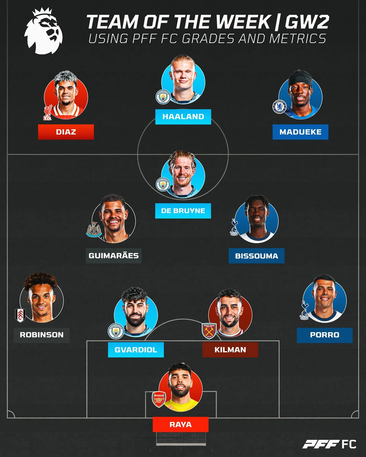 Premier League TOTW using Gradient Grades and Metrics - GW2 📊