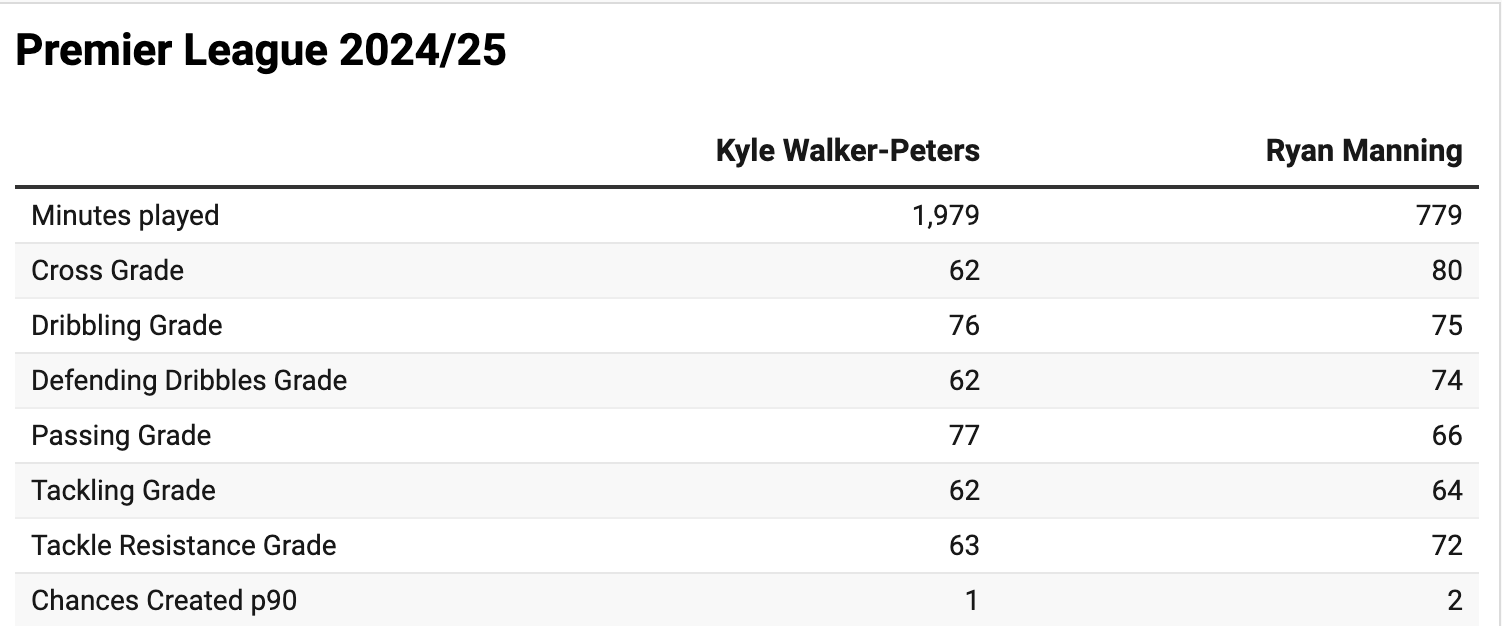 Looking at their performances side by side this season, Manning does seem to have the edge over Walker-Peters in a lot of categories.