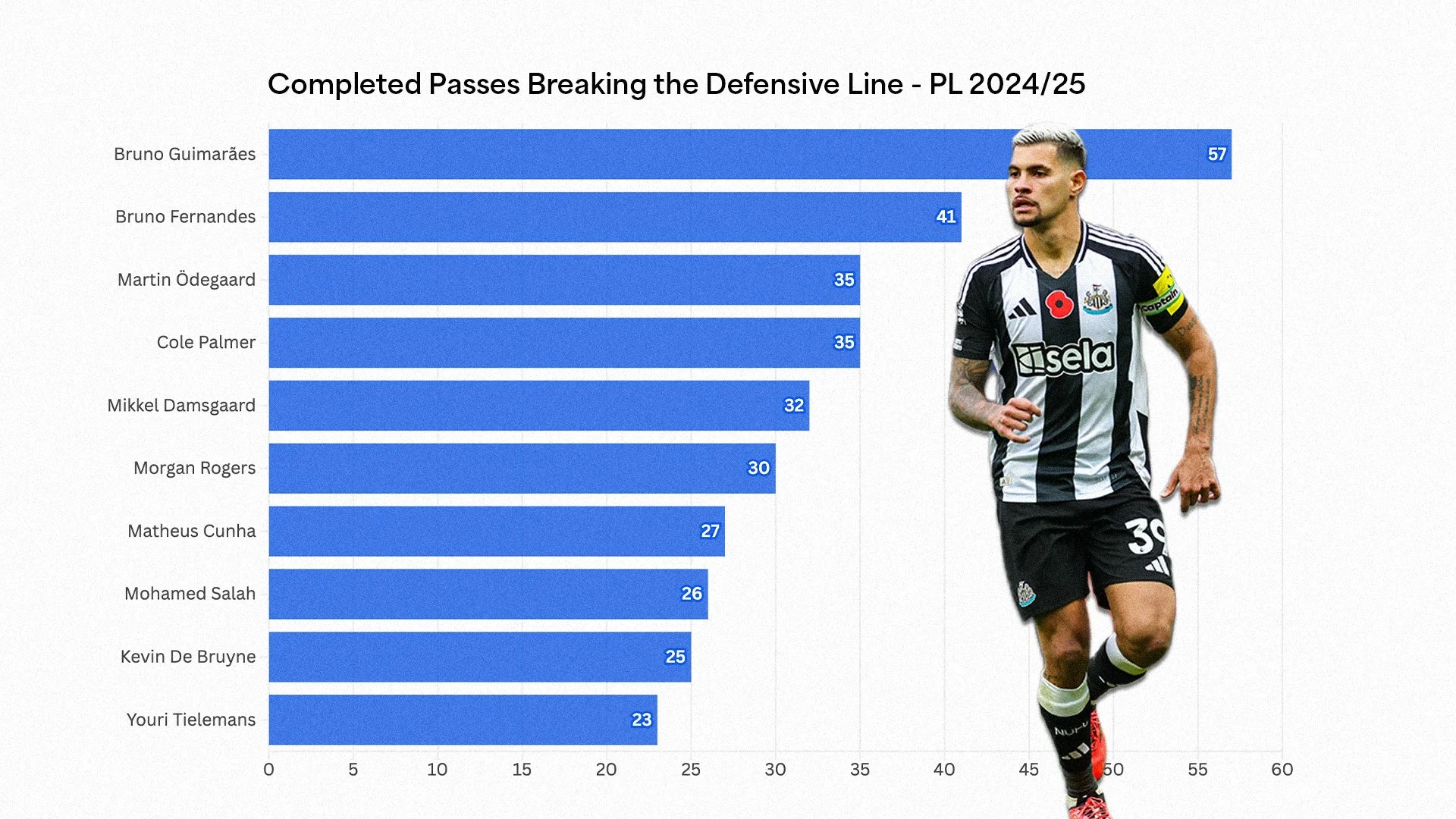 The boyhood Newcastle United fan has repaid his managers’ faith tenfold, establishing a lethal partnership with Alexander Isak and chipping in with a personal best 11 assists (ranked 2nd only behind Mohamed Salah).